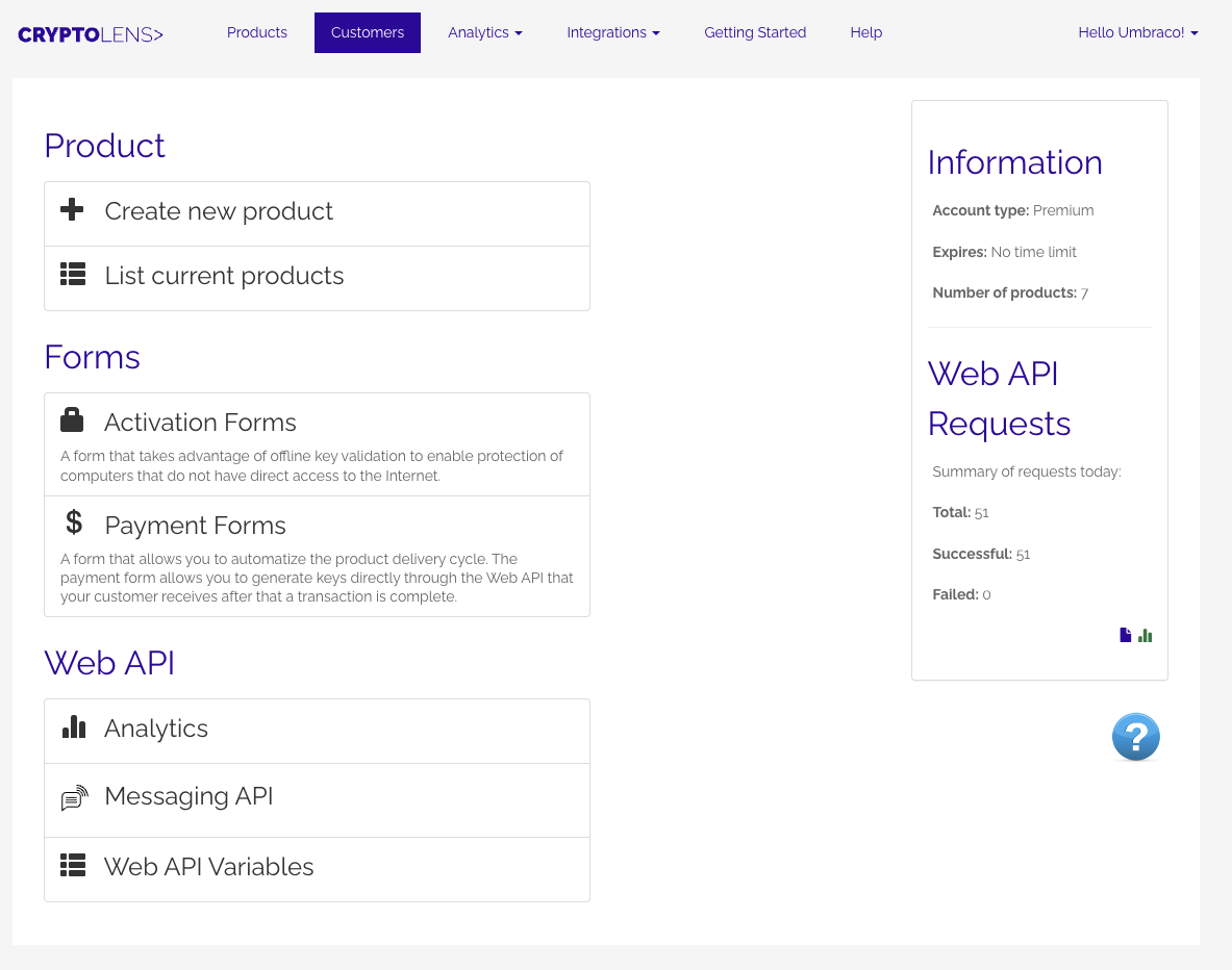 Follow these steps to access your Umbraco licenses through Cryptolens